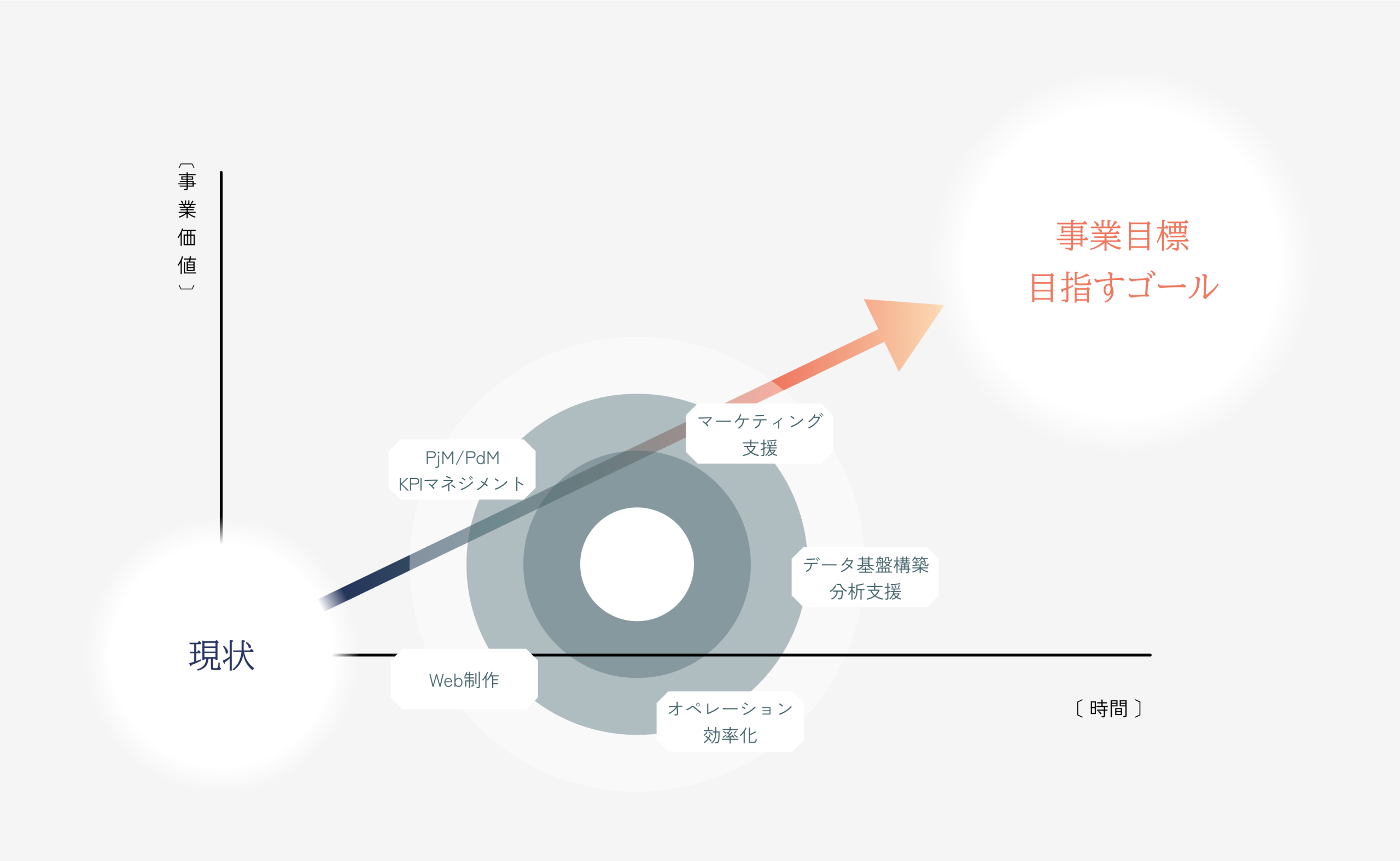 『あるべき姿』をともに目指す事業成長パートナーとして伴走します。